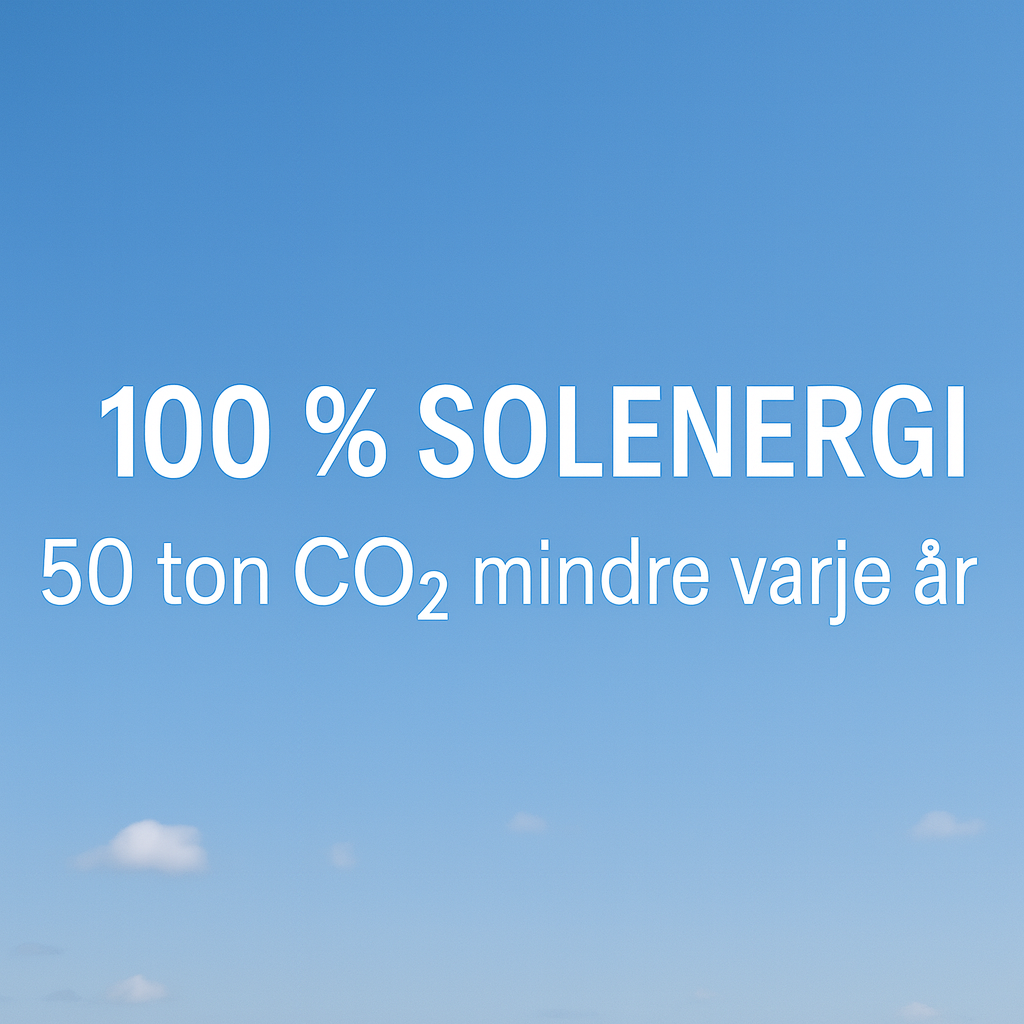 " Över 50 ton CO₂ kommer sparas varje år " tack vare 100 % solenergi & batterilagring.
